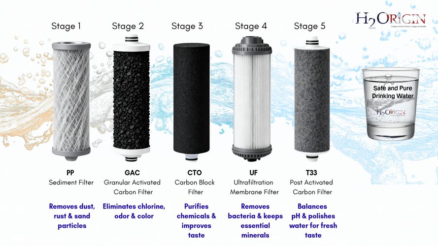 H2O Origin brings you premium, healthy, and crystal-clear drinking water straight from your tap — no plastic bottles, no electricity, just pure refreshment. Engineered with American design and Malaysian assembly, it features an advanced 5-stage filtration system that removes all unwanted particles, chlorine, and bacteria for safe, great-tasting water every day.